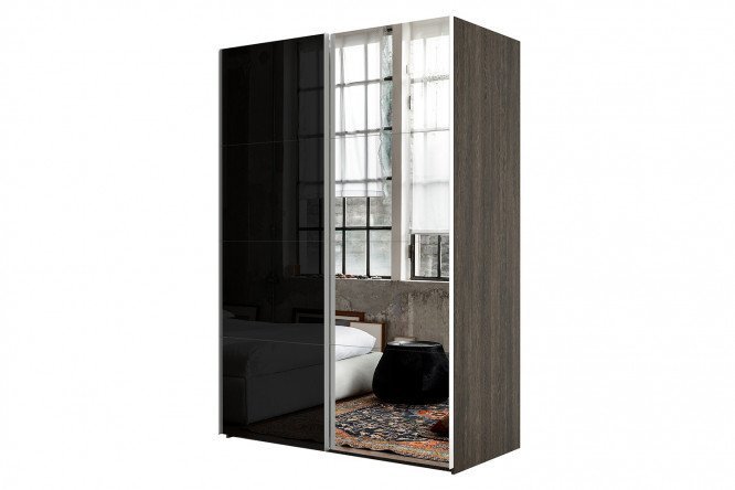 2-door wardrobe Comet 160×240 cm Bardolino oak, black glass fronts, mirror