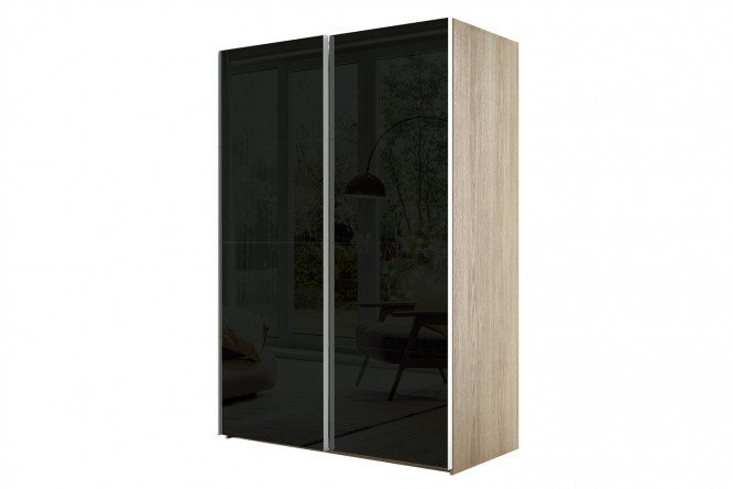 2-door wardrobe Comet 160×240 cm Bardolino oak, black glass fronts