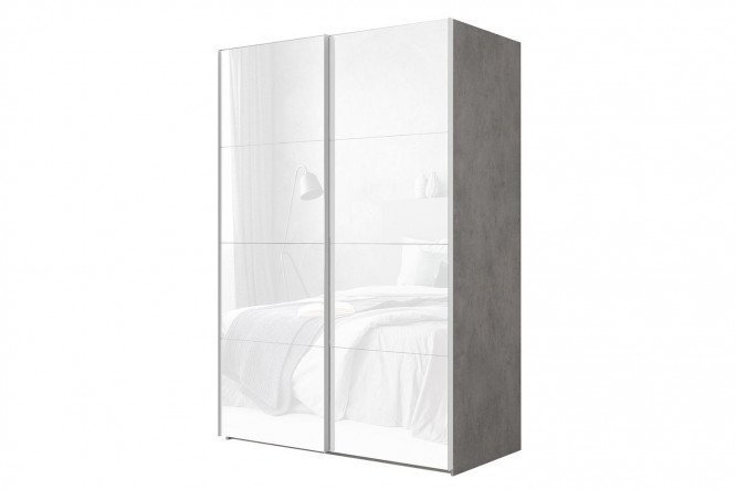 2-door wardrobe Comet 180×220 cm light concrete, white glass facades