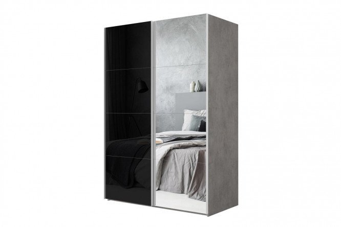2-door wardrobe Comet 180×240 cm light concrete, mirror fronts, black glass