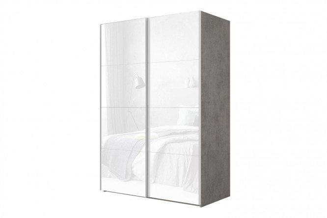 2-door wardrobe Comet 180×240 cm light concrete, white glass facades