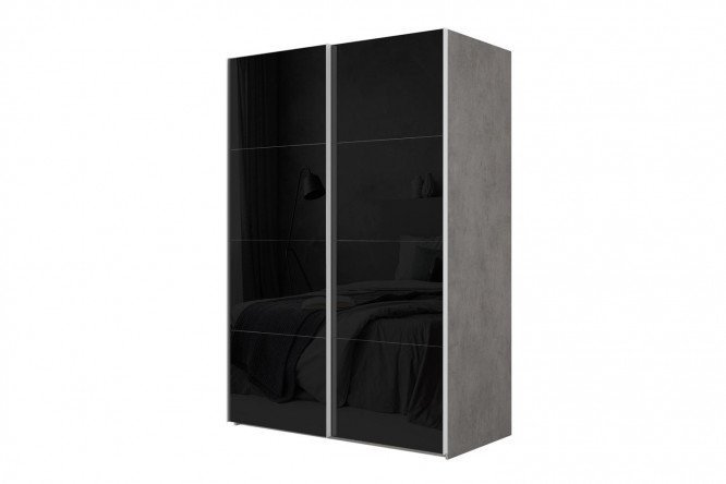 2-door wardrobe Comet 200×240 cm light concrete, black glass facades