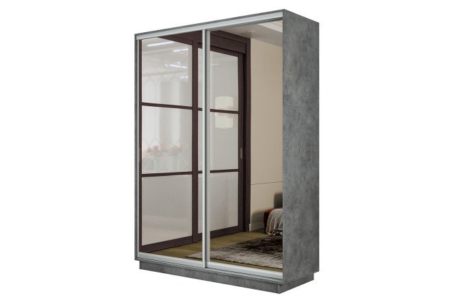 2-door wardrobe Slide-2 160x220x60 cm, concrete/silver, with two mirrors