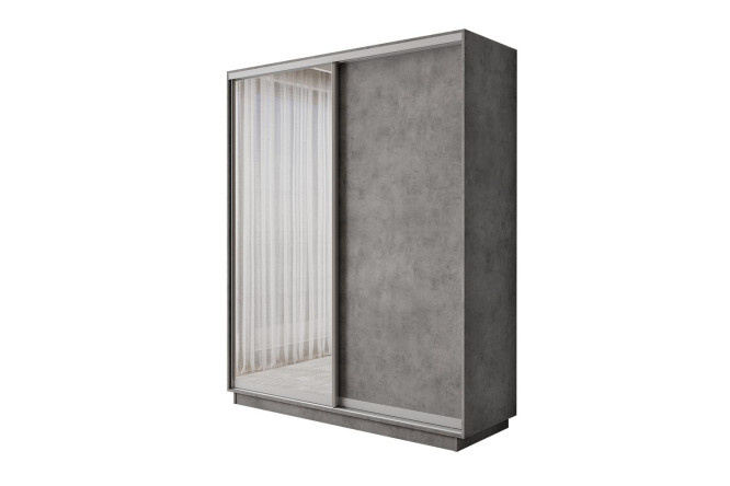 2-door wardrobe Slide-2 180x220x45 cm, concrete, silver, with one mirror