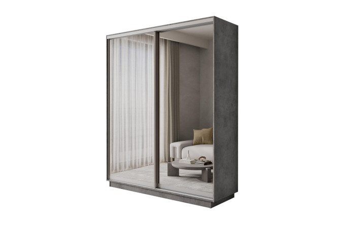 2-door wardrobe Slide-2 180x240x60 cm, concrete, silver, with two mirrors