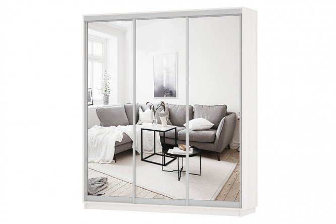 3-door sliding wardrobe Slide 180x220x60 cm, light ash Anchor, with three mirrors