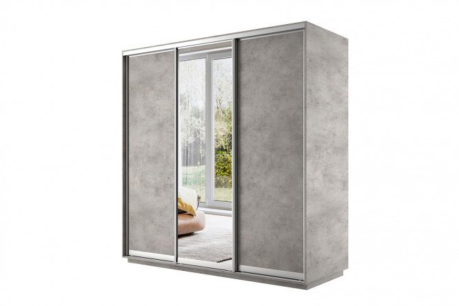 3-door sliding wardrobe Slide 240x240x60 cm, light concrete, with one mirror