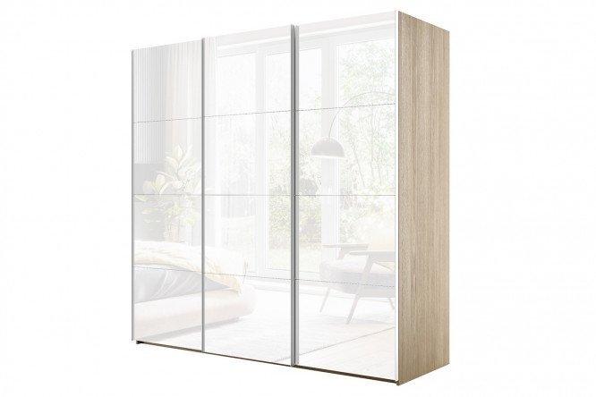3-door wardrobe Comet 240×220 cm Bardolino oak, white glass fronts