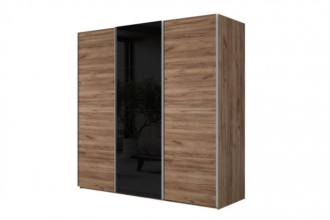 3-door wardrobe Comet 240×220 cm kraft tobacco oak, black glass fronts, kraft tobacco oak