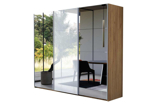 3-door wardrobe Comet 240×240 cm kraft oak tobacco, mirror fronts, white glass