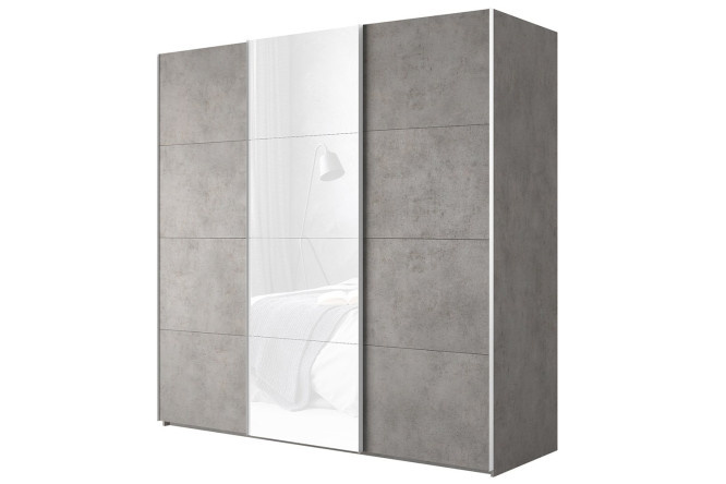 3-door wardrobe Comet 240×240 cm light concrete, white glass facades, light concrete