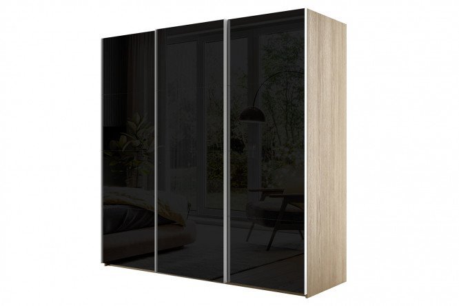 3-door wardrobe Comet 270×220 cm Bardolino oak, black glass fronts