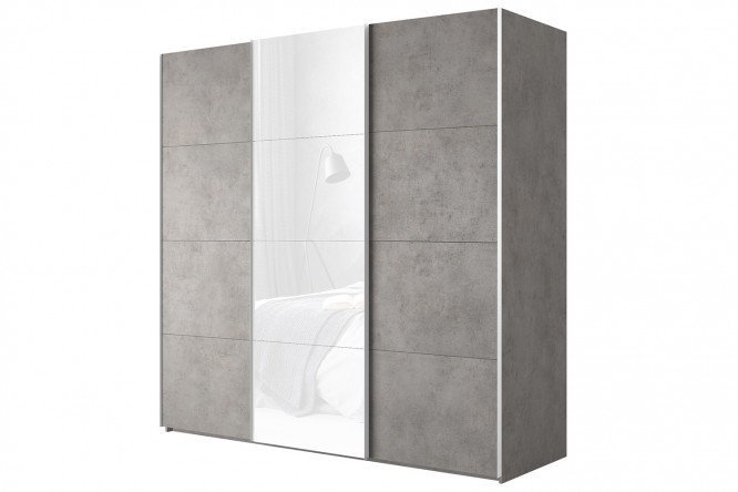 3-door wardrobe Comet 270×220 cm light concrete, white glass facades, light concrete