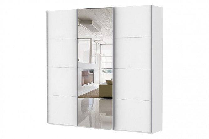 3-door wardrobe Comet 270×220 cm white snow, white fronts, mirror