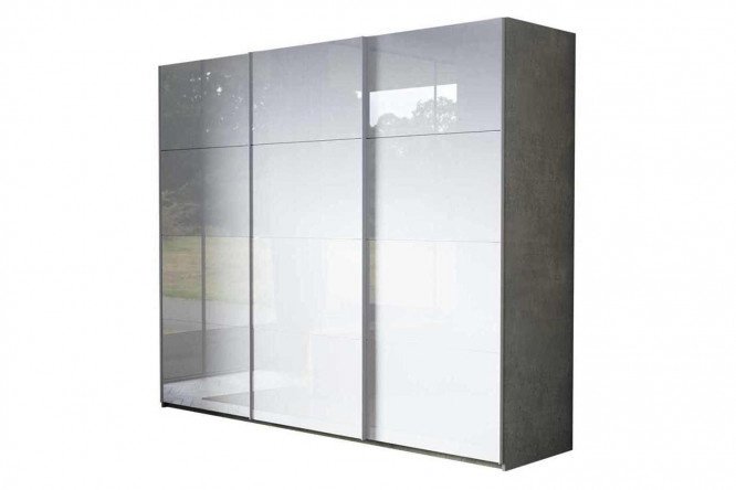3-door wardrobe Comet 300×220 cm light concrete, white glass facades