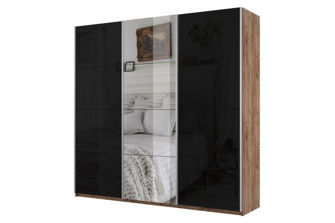 3-door wardrobe Cors 180×230 cm, craft tobacco oak, black facade, with one mirror