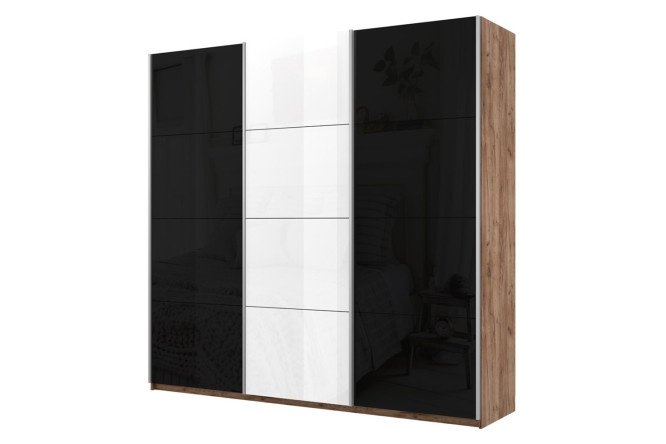 3-door wardrobe Cors 180×230 cm, kraft tobacco oak, white gloss facade, black