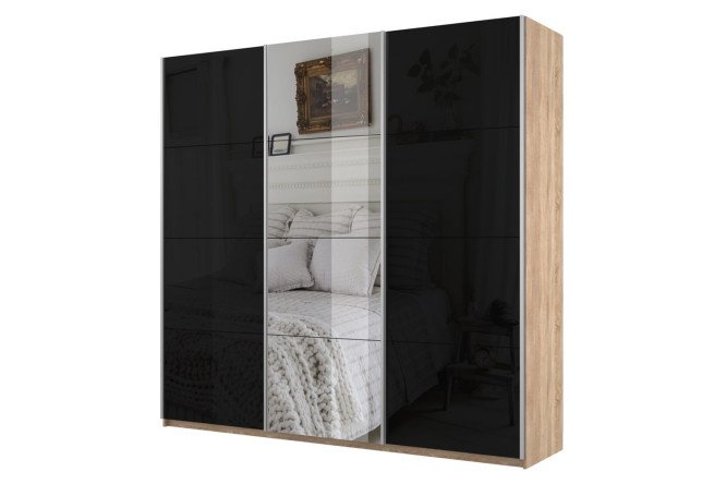 3-door wardrobe Cors 180×230 cm, Sonoma, black facade, with one mirror