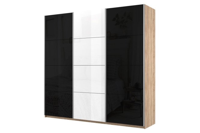 3-door wardrobe Cors 180×230 cm, Sonoma, facade white gloss, black