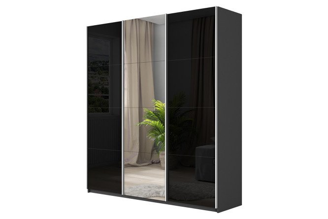 3-door wardrobe Cors 210×230 cm, gray diamond, black facade, with one mirror