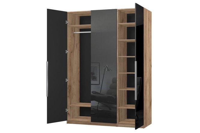 3-door wardrobe Oscar Amika 150x236x59.6 cm, Craft tobacco oak, glossy black graphite