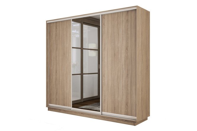 3-door wardrobe Slide-2 180x240x60 cm, Sonoma/silver, with one mirror