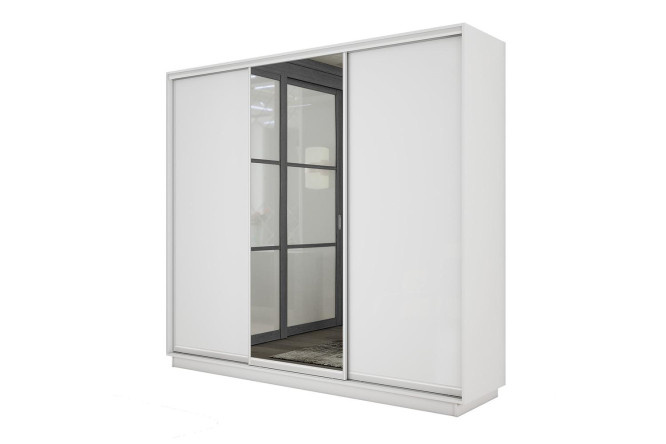 3-door wardrobe Slide-2 210x240x60 cm, Snow white/silver, with one mirror