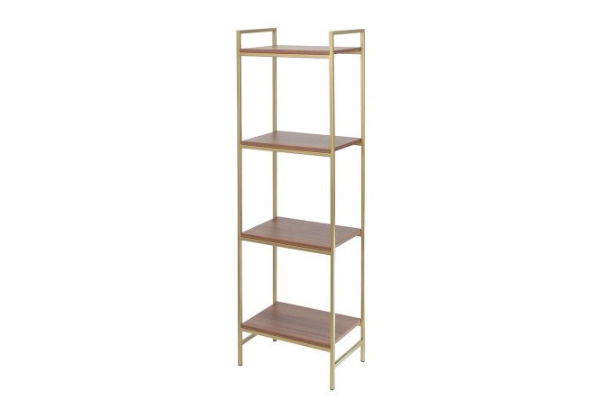 Due to its size, a stable loft-style shelving unit is suitable for a small space in a bedroom or living room, a niche in the hallway, or an office. The rack will conveniently place books, decorative elements, indoor plants and much more. The frame is made of steel, powder-coated in gold color – this is the key to durability and convenience. Due to its own weight, the rack will stand safely and does not require additional fastening to the wall. Rack size 450x300x1450 mm. Shelves made of laminated chipboard with a thickness of 16 mm can withstand a weight of up to 10 kg per shelf. Number of shelves – 4. Shelf color – walnut. The rack is made in our own production with all the attention to detail. Suitable for both apartments and office spaces.