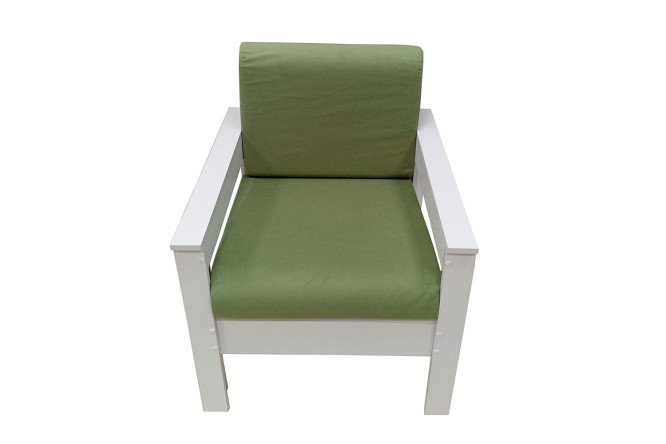 The NEW VICTORIA armchair is the perfect combination of comfort and style, which will be a wonderful addition to the interior. The chair’s compact dimensions allow it to easily fit into any space, while still offering enough space for complete relaxation. Despite the fact that the chair is not folding, its thoughtful shape and soft pillows provide the most comfortable rest. Two comfortable armrests add extra support, making your time even more enjoyable. The spacious seat allows you to sit comfortably and completely relax after a hard day. The stylish white frame combined with pistachio-colored velor cushions gives the model an elegant and versatile look that allows it to blend harmoniously into any interior. The removable cushion cover makes it easier to care for the furniture, making it even more practical. The NEW VICTORIA armchair will be a great place to relax, read or communicate with loved ones.