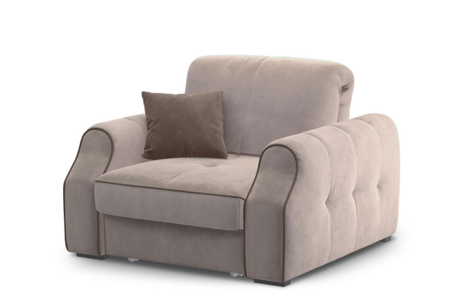 The Toulouse chair-bed can easily cope with double load: during the day it can serve as a place for family leisure, and at night it can be transformed into a guest sleeping place. When folded, the model is very comfortable: the soft back folded in half allows you to take the most comfortable position for reading or watching a movie, rounded armrests create a feeling of security and calm. The velor upholstery, decorated with drawstrings and emphasized by contrasting decorative piping, also contributes to creating an atmosphere of relaxation.