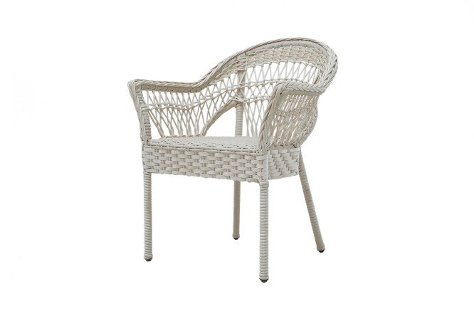 The model with a comfortable back, armrests and stable supports is very comfortable and looks great. The frame of the product is made of durable steel and can withstand significant loads. The metal surface is protected by Eco-rattan powder coating, from which a spectacular weaving is made, unlike natural material, it is resistant to external influences.