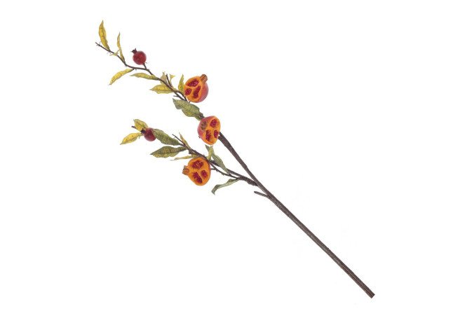 Create coziness at home or transform the surrounding space with the help of artificial flowers. They are an excellent alternative to live ones. They do not require special care or watering. A pomegranate branch can be decorated as an independent decoration or assembled into a composition.