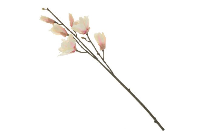 The artificial Magnolia flower is made of textile and polymer materials. Petals and leaves have the correct shape. The inflorescences sit tightly on the stem, the leaves are securely fixed. The flower looks natural and will look natural in the interior. Does not require special care.