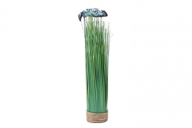 Artificial grass stems with butterflies are an original decoration that will help refresh the interior and add fresh bright colors to it. The product is 40 cm high and can be installed on a chest of drawers, a cabinet, or in a niche in the wall. The composition is made of high-quality, safe, odorless plastic, which will retain its original color brightness for many years. Unlike natural plants, this model does not require daily care: it is enough to periodically sweep away dust with a soft-bristle brush.