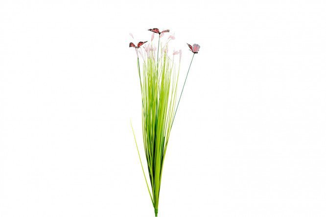 Artificial grass stems with butterflies, 70 cm high, made of plastic.