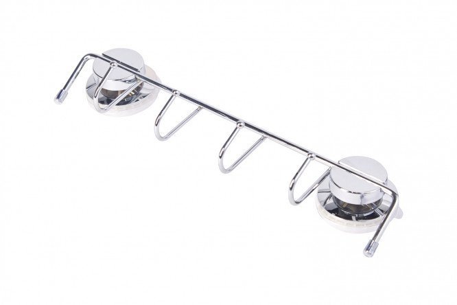 An eye-catching chrome towel holder is an indispensable item in the bathroom. The product with four hooks allows you to compactly place towels for the whole family in one place.
