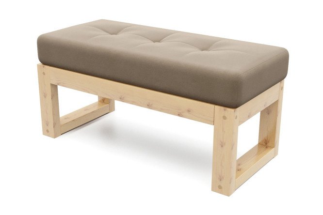 Amber Pine/Ultra Beige bench is a strict, elegant touch to your interior. The frame of the product is made of natural and environmentally friendly solid pine, coated with furniture varnish. The mattress is made of beige velor. The mattress cover is not removable. The base is a slatted bottom made of solid pine. This furniture is contraindicated for indoor spaces or verandas with a roof, direct sunlight or even mushroom rain.