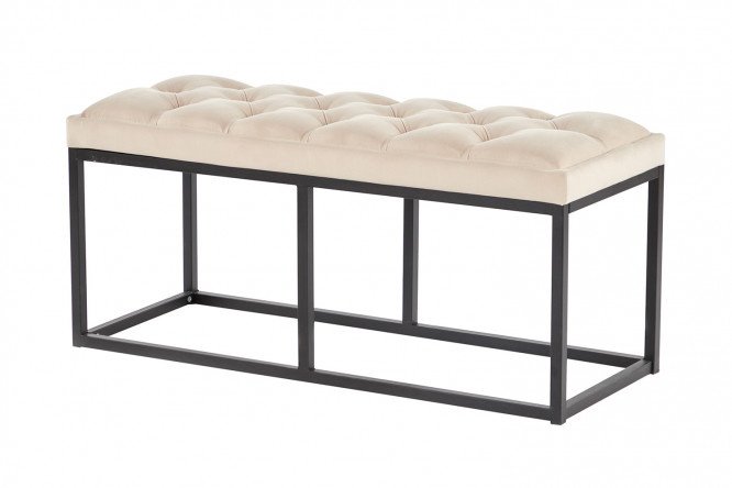 The Praktik-9 bench will help bring additional comfort to the decor of the entrance area, hallway, hall, living room designed in a loft or minimalist style. An elongated pouf with a soft seat will allow you to sit comfortably when changing shoes; it can also be used as a bedside bench in the bedroom. The removable pillow, upholstered in microvelor, is decorated with a drawstring. Metal supports connected by crossbars along the perimeter ensure the stability of the product. The model is designed for weights up to 80 kg.