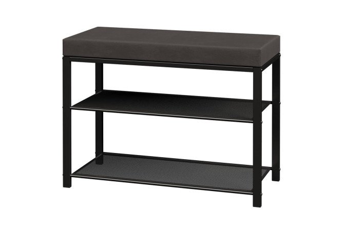 The Toronto 23S bench from the Russian brand ZMI is a stylish and smart way to organize a storage system for your shoes. The floor product consists of a frame, shelves made of metal (steel) and a soft seat made of nubuck fabric with foam filling. The metal parts of the shelf are coated with powder paint, which, when hardened, forms an impenetrable polymer film that prevents corrosion. The durable bench has two tiers with horizontal “mesh” shelves, the holes of which allow air to circulate freely. It is convenient to place any low shoes on the flat, “breathable” shelves (accommodates up to 6 pairs). One shelf can withstand 8 kg of load. The metal legs of the shoe rack are equipped with plastic plugs to protect the floor covering from scratches.
