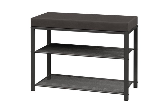 The Toronto 23S bench from the Russian brand ZMI is a stylish and smart way to organize a storage system for your shoes. The floor product consists of a frame, shelves made of metal (steel) and a soft seat made of nubuck fabric with foam filling. The metal parts of the shelf are coated with powder paint, which, when hardened, forms an impenetrable polymer film that prevents corrosion. The durable bench has two tiers with horizontal “mesh” shelves, the holes of which allow air to circulate freely. It is convenient to place any low shoes on the flat, “breathable” shelves (accommodates up to 6 pairs). One shelf can withstand 8 kg of load. The metal legs of the shoe rack are equipped with plastic plugs to protect the floor covering from scratches.
