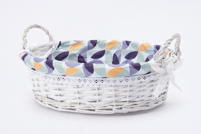 Basket with handles TB21 made of willow vine material, 90% polyester, 10% cotton in the colors “matte white, blue, light green”.