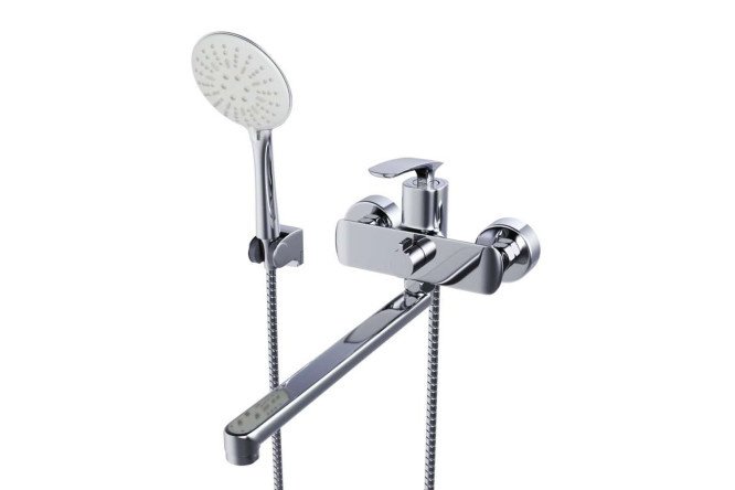 The product is made of plumbing brass – a strong, durable alloy. The glossy chrome-nickel coating gives the mixer an aesthetic appearance. A long swivel spout allows water to be supplied to the sink area of the washbasin installed near the bathtub.