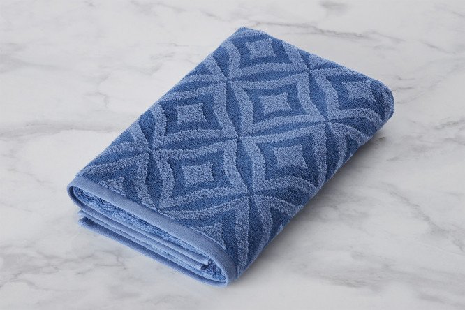 A 100% cotton towel is a classic choice for the bathroom. Cotton fiber has proven itself to be super-absorbent and quick-drying, which is especially important for those who like to shower twice a day. It is pleasant to use a product with dense pile for rubbing after water procedures – such a massage improves blood circulation, warms up the muscles, while the soft terry does not irritate the skin. The perimeter of the towel is decorated with a neat border that prevents the threads from unraveling.