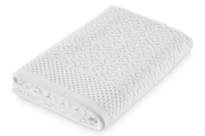 A 100% cotton towel is a classic choice for the bathroom. Cotton fiber has proven itself to be super-absorbent and quick-drying, which is especially important for those who like to shower twice a day. It is pleasant to use a product with dense pile for rubbing after water procedures – such a massage improves blood circulation, warms up the muscles, while the soft terry does not irritate the skin. The perimeter of the towel is decorated with a neat border that prevents the threads from unraveling.
