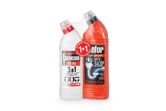 The Sanfor promotional set is the ideal solution for keeping your home clean and tidy. The set includes two effective products: “Anti-clog” and “Whiteness gel”, which will help cope with various dirt and blockages.