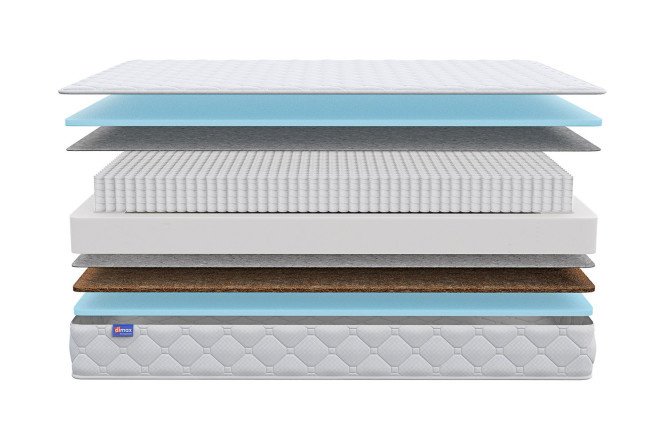 The fillings of the mattress are thought out to the smallest detail: a natural coconut layer provides good ventilation and supports the correct position of the spine, and elastic foam adapts to the shape of the body, promoting relaxation. The jacquard cover with high-volume stitching adds additional comfort, creating a pleasant tactile sensation.