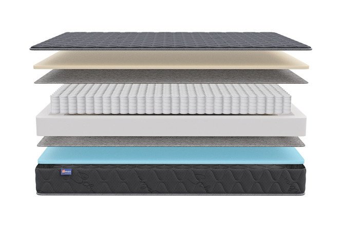 The “DIMAX” Beauty Comfy mattress creates an atmosphere of real comfort and relaxation thanks to its unique composition. It combines elements that provide ideal support and help achieve deep sleep. An independent spring unit works in harmony with the fillings, allowing the mattress to adapt to the contours of the body, making it virtually invisible while resting. The model offers two levels of rigidity, allowing you to choose the most suitable option depending on the user’s preferences. On one side there is a classic surface with medium hardness, and on the other there is a soft side with a memory effect that envelops the body and creates a feeling of lightness. This allows you to change sensations depending on your mood or needs. The hypoallergenic composition of the mattress makes it suitable even for people with sensitive skin, which adds an additional level of comfort. This stylish jacquard cover in a deep steel shade fits easily into any modern interior, giving the bedroom an elegant look.