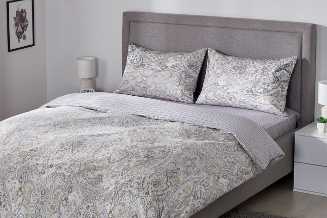 The MICASA Teresio patterned bed linen set is made of natural material – sateen, woven from cotton threads. It will look elegant on the bed, bringing visual pleasure with the satin sheen of the fabric. Smooth, beautiful fabric will ensure a comfortable rest in bed: the products are hypoallergenic and suitable for very sensitive skin, retain heat well and at the same time breathe. The duvet cover is sewn with a zipper, so the duvet is easy to tuck in and does not slip out. The set can be washed in a washing machine, maximum washing temperature 30℃.