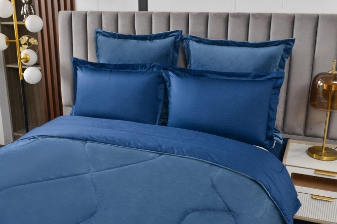 Immerse yourself in comfort and tenderness with the Enrique bedding set. This one-and-a-half-bed set is designed to turn sleep into a real holiday of comfort. Made from quality viscose and soft cotton in trendy colours, the set feels great on the skin. The duvet’s 100% eco-fiber filling provides hypoallergenic properties, giving you restful and cozy nights.