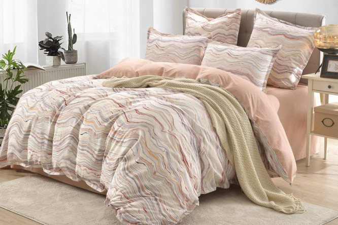 Sofi De MarkO satin sets combine elegance and originality of design – this is the ideal choice for those who equally value comfort, aesthetics and practicality. The satin fabric of the set is made of 100% cotton. The fabric is made from twisted cotton thread, which is woven in a way that allows for high density and strength of the material, while maintaining the softness and delicacy of the fabric. Thanks to its excellent breathability, the material is suitable for any season, providing pleasant tactile sensations and healthy sleep.